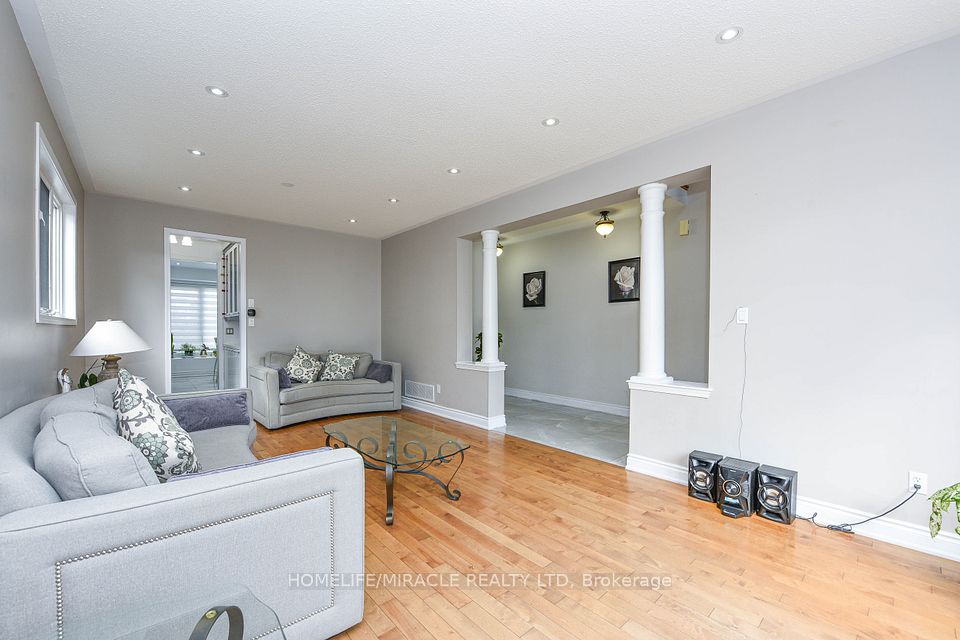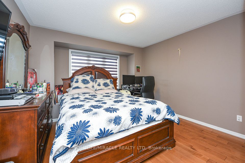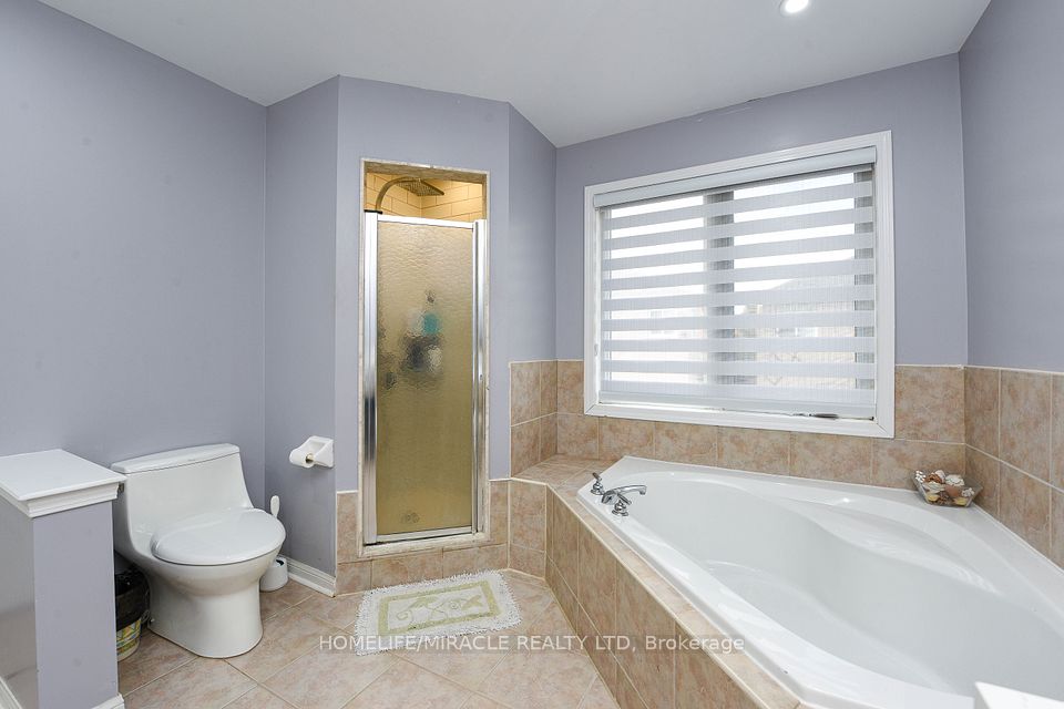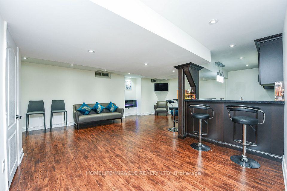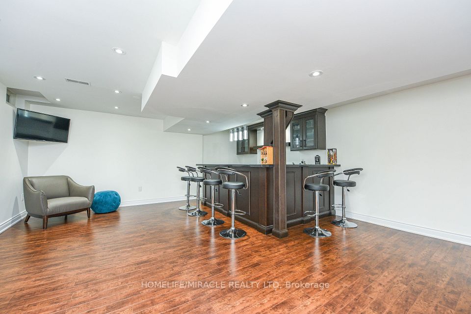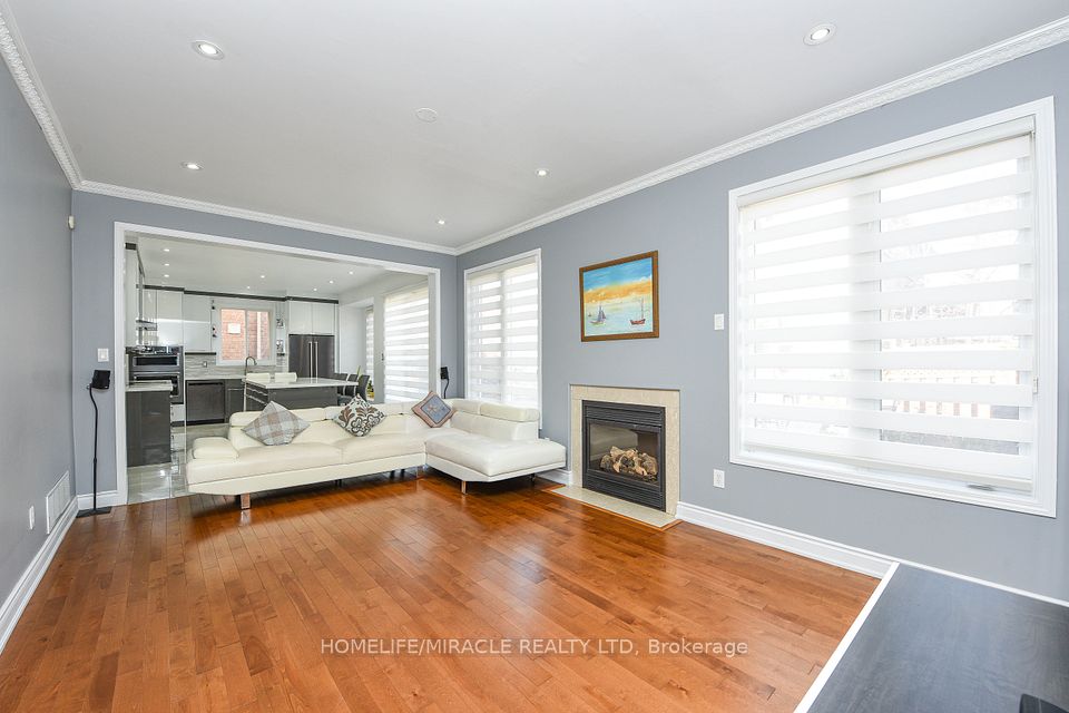 Stunning 4-bedroom detached home in a highly desirable Brampton neighbourhood! Features upgraded hardwood floors throughout, 9-ft ceilings, pot lights with dimmers, and a cozy family room with fireplace. Modern, recently upgraded kitchen with quartz countertops, custom cabinetry, large island with seating for eight, induction stove, upgraded SS appliances, and a beautiful butler's servery/pantry with mini-fridge. Walkout to a 2-stage deck with electric fence lighting. Upper level includes a spacious primary bedroom with 4-pc ensuite and W/I closet, plus 3 large bedrooms and an upgraded guest washroom with modern stand-up shower. Finished basement with a stylish bar-perfect for entertaining. Exterior upgrades include pot lights all around the home and an extended driveway with built-in lighting. Additional highlights: brand new 2-stage Carrier furnace with humidifier, brand new washer/dryer, Ecobee smart thermostat, and upgraded quartz counters in all bathrooms. Prime location close to Hwy 410/401/407, top-rated schools, parks, shopping, and community centre.