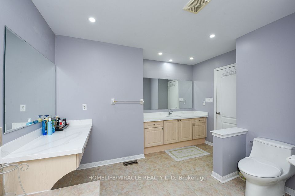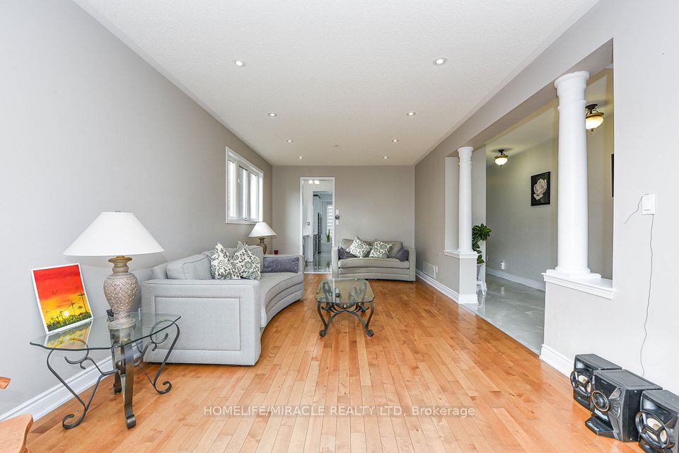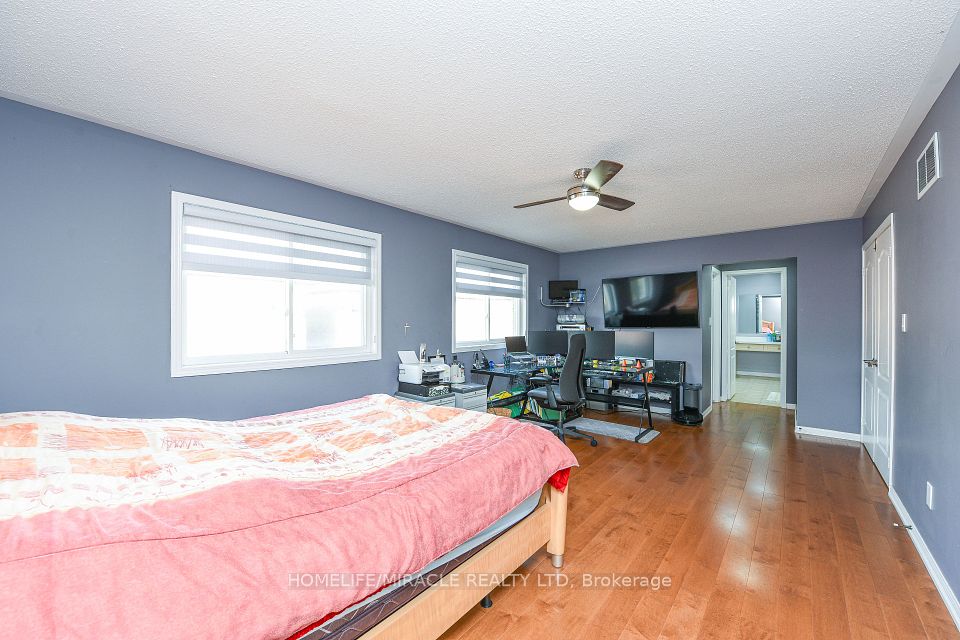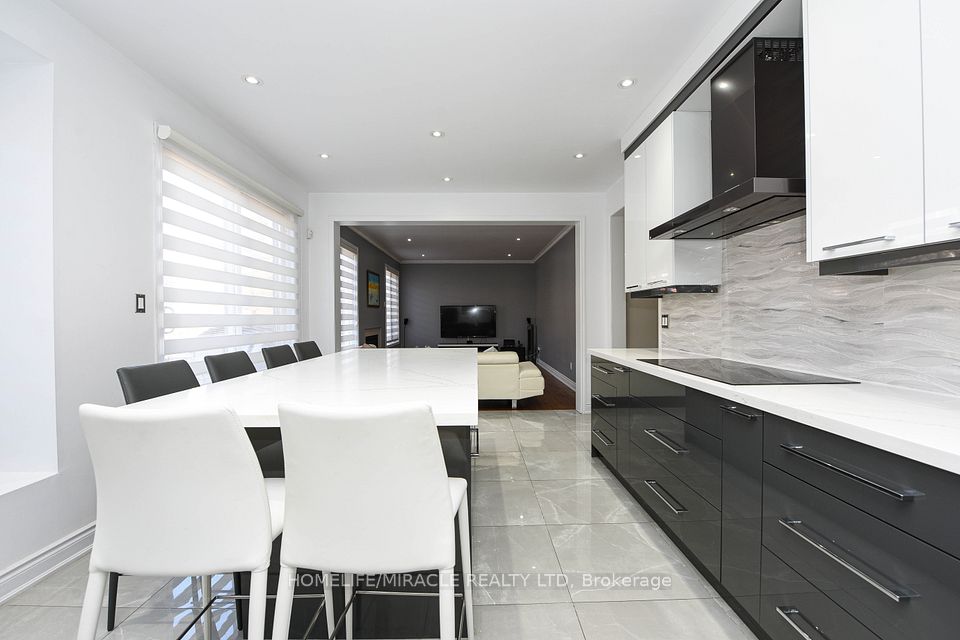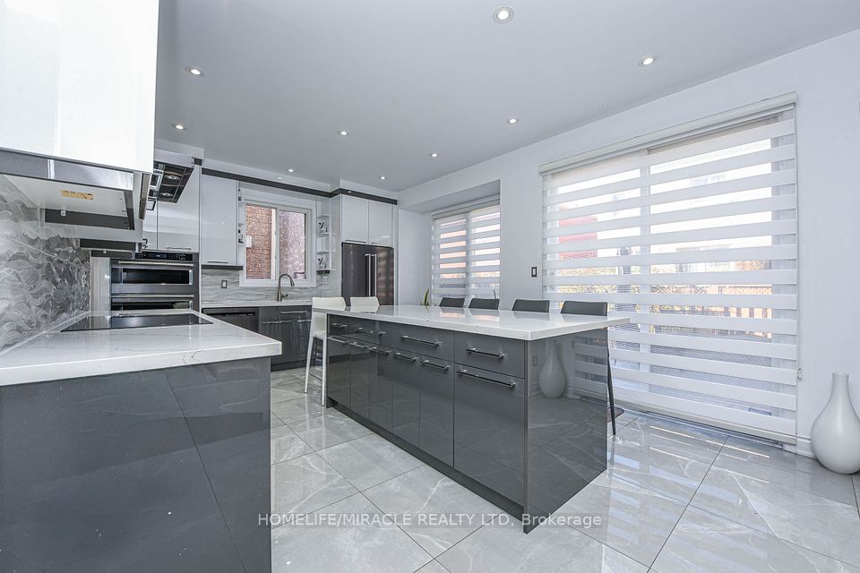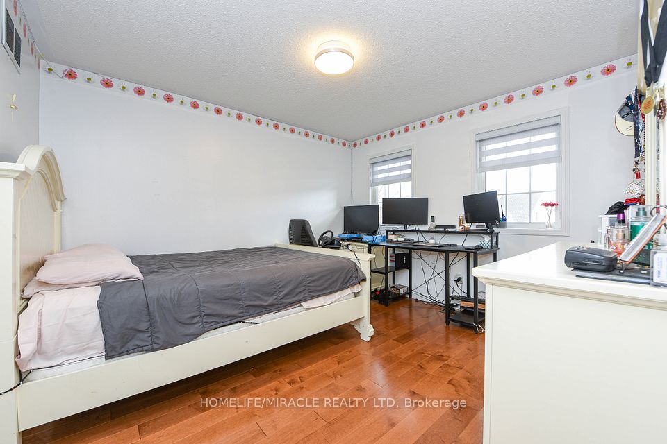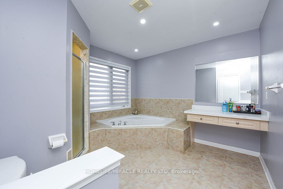 Stunning 4-bedroom detached home in a highly desirable Brampton neighbourhood! Features upgraded hardwood floors throughout, 9-ft ceilings, pot lights with dimmers, and a cozy family room with fireplace. Modern, recently upgraded kitchen with quartz countertops, custom cabinetry, large island with seating for eight, induction stove, upgraded SS appliances, and a beautiful butler's servery/pantry with mini-fridge. Walkout to a 2-stage deck with electric fence lighting. Upper level includes a spacious primary bedroom with 4-pc ensuite and W/I closet, plus 3 large bedrooms and an upgraded guest washroom with modern stand-up shower. Finished basement with a stylish bar-perfect for entertaining. Exterior upgrades include pot lights all around the home and an extended driveway with built-in lighting. Additional highlights: brand new 2-stage Carrier furnace with humidifier, brand new washer/dryer, Ecobee smart thermostat, and upgraded quartz counters in all bathrooms. Prime location close to Hwy 410/401/407, top-rated schools, parks, shopping, and community centre.